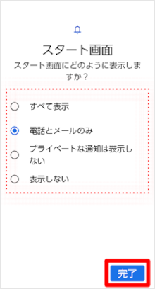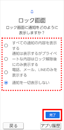 ロック画面上での「通知」の表示方法を選択し、[完了]をタップします。