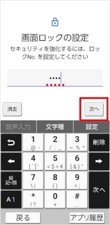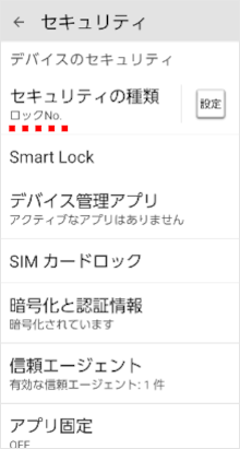 設定アプリの「セキュリティの種類」で画面ロックを「ロックNo.」に設定することができます。