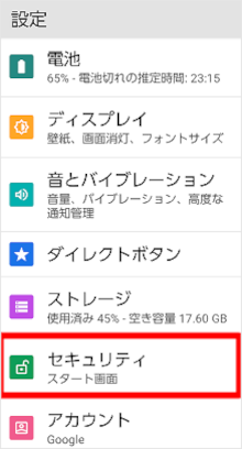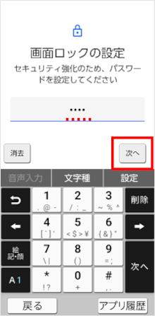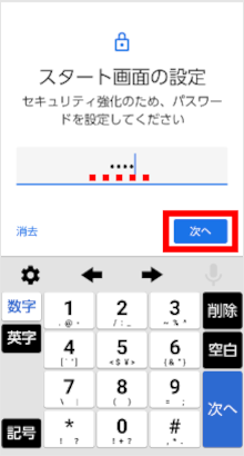設定アプリの「セキュリティの種類」で画面ロックを「パスワード」に設定することができます。