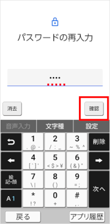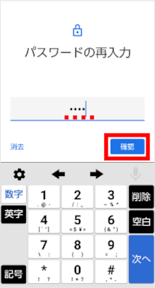 再度同じ「ロックNo.」を入力し、[確認]をタップします。
