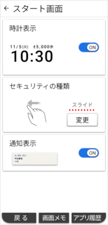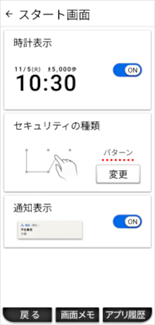 ※「パターン」「パスワード」を設定している場合は表示されません。