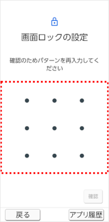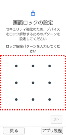 設定アプリの「セキュリティの種類」で画面ロックを「パターン」に設定することができます。