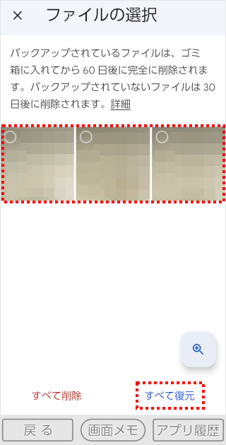 ※すべて復元する場合は、写真や動画を選択せずに[すべて復元]をタップし、手順7に進みます。