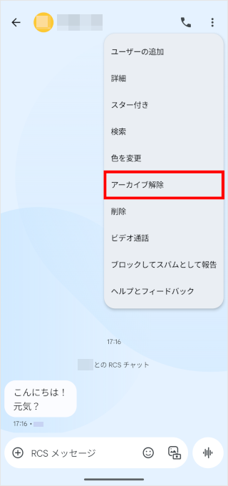 アーカイブしたメッセージの復元方法は、以下をご確認ください。