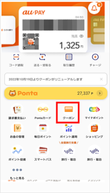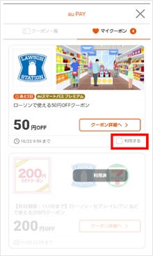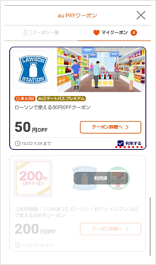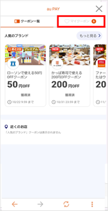 au PAY アプリ内のクーポン画面で、クーポン利用可能店舗をご確認いただけます。