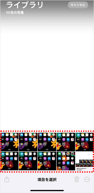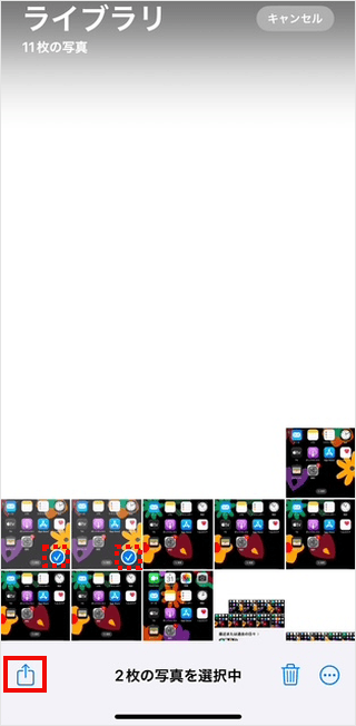 選択した画像に青丸のチェックマークが表示されたことを確認し、[完了]をタップします。