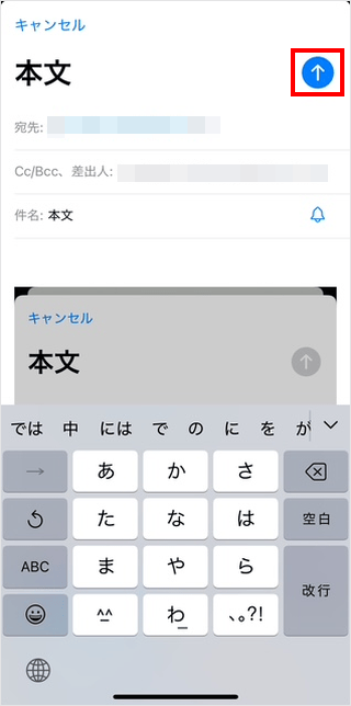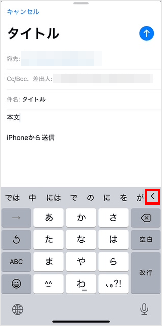 入力が完了したら、本文内にカーソルが表示されている状態で、[<]をタップします。