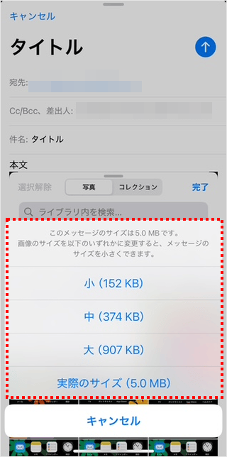 メールアプリから画像を添付してメールアプリで送ることができます。