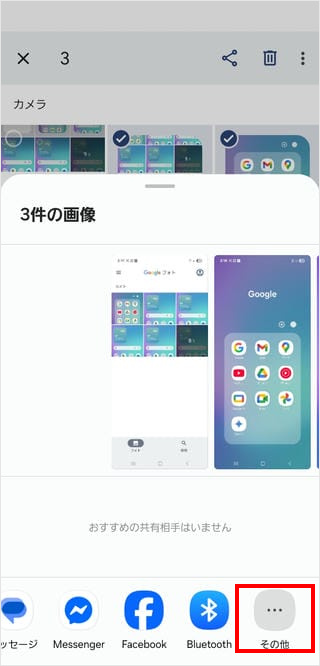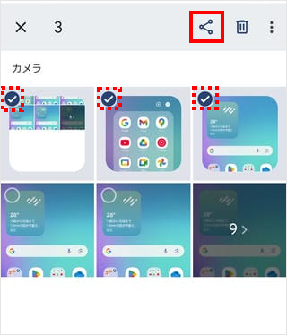 選択した画像がチェックマークで選択されたことを確認し、[共有ボタン(<マーク)]をタップします。