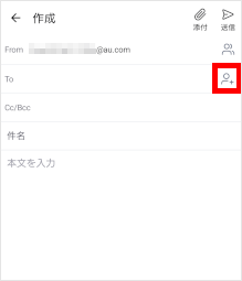 宛先を入力するために、[人型と+(プラス)]のマークをタップします。