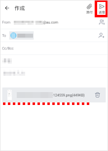 auメールアプリで画像を添付してメールを送ることができます。