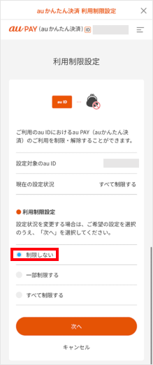 • 本ページはお客さま自身で設定した利用制限を解除する操作です。