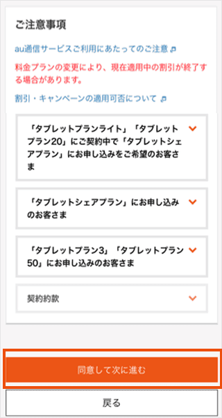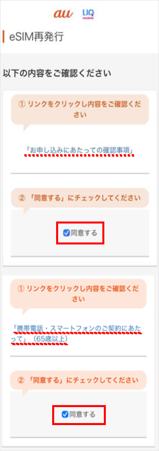 ご確認事項を確認し、[チェックボックス]をタップします。