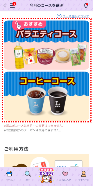コースの選択/クーポンの取得/取得したクーポンの利用方法について、詳細は以下をご確認ください。