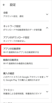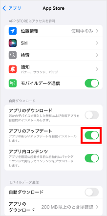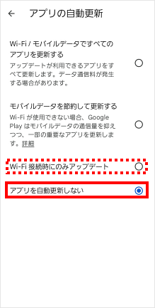 ※Wi-Fi接続時のみアプリの自動更新を行いたい場合は、[Wi-Fi接続時にのみアップデート]をタップします。