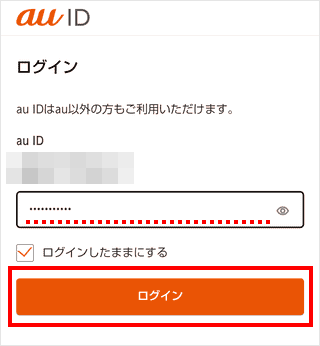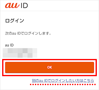 ※表示されているau IDと異なるau IDでログインする場合は、[別のau IDでログインしたい方はこちら]をタップします。