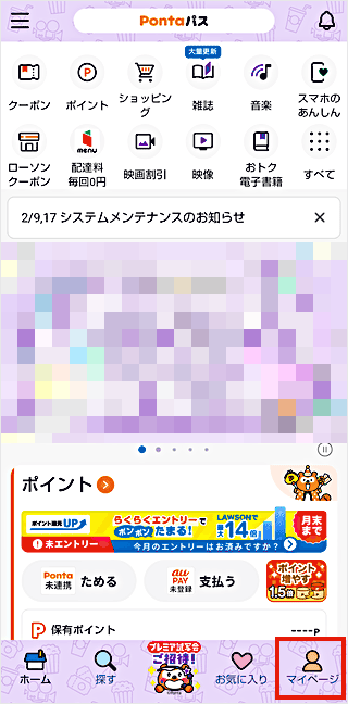 [マイページ]をタップします。