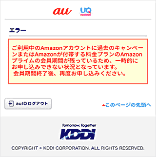 Amazonプライムのご利用状況により、エラーが表示されることがあります。