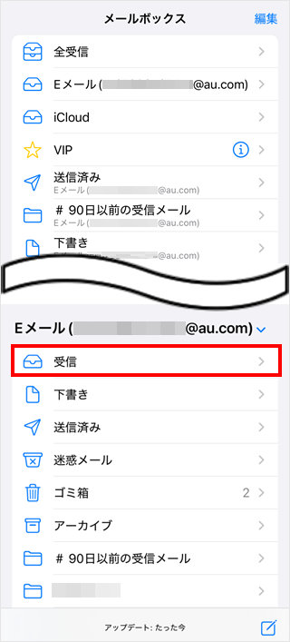 ※ここでは例として[受信]をタップします。
