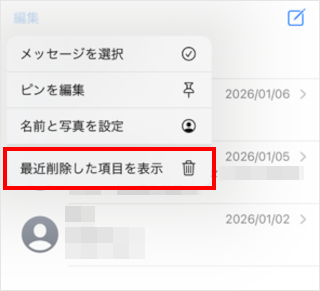 メッセージアプリの「最近削除した項目を表示」で削除したメッセージを元のフォルダに戻すことできます。