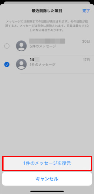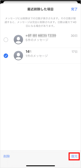 [●件のメッセージを復元]をタップします。