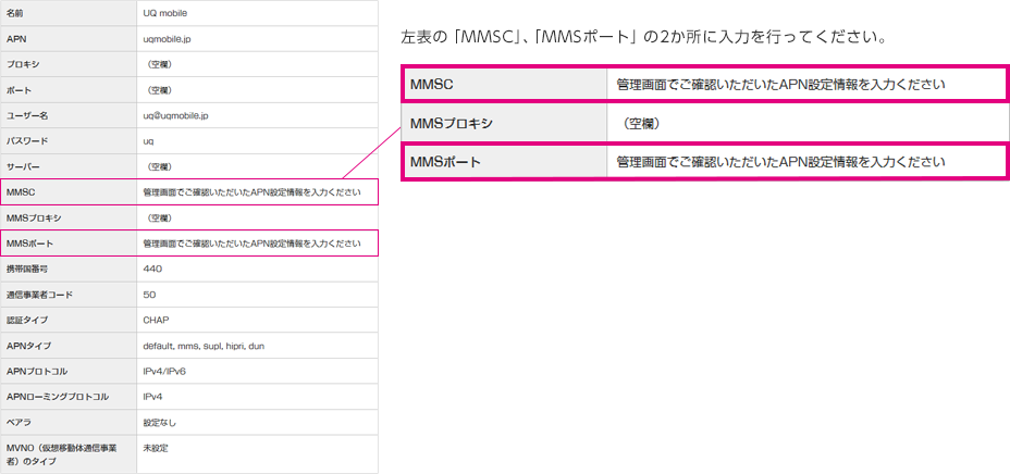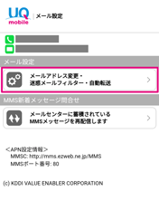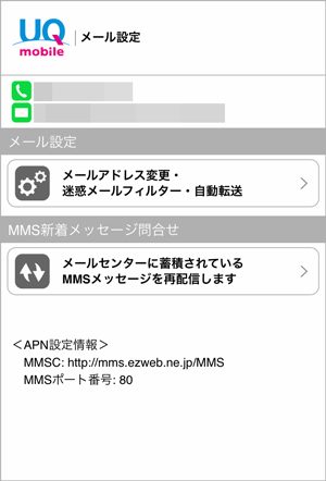 UQ mobileの製品以外でメールサービスをご利用される場合、MMSC、MMSポートの設定が必要になります。
