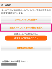 「迷惑メールフィルターの設定/確認へ」をタップ