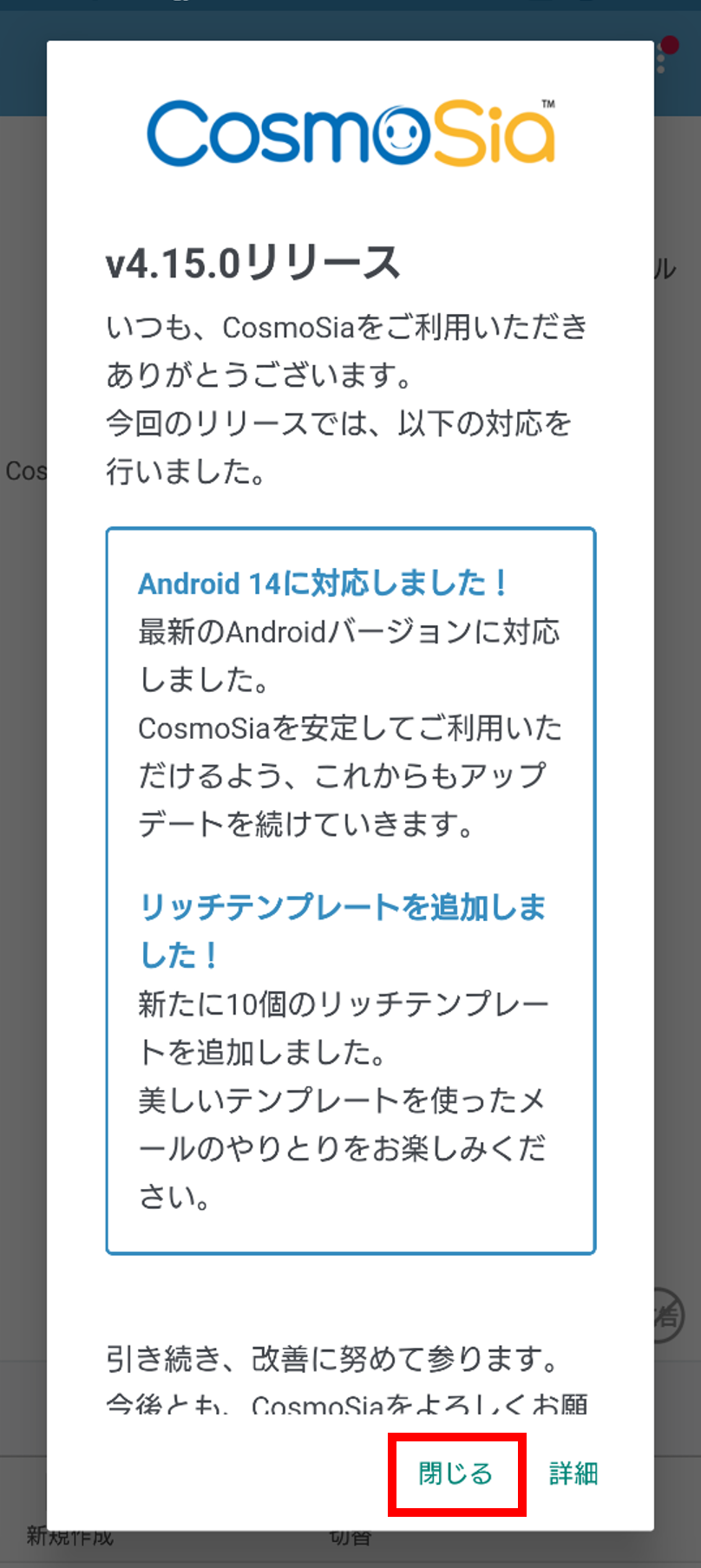 ホーム画面やアプリ一覧画面より、[メール(CS)]をタップして起動します。