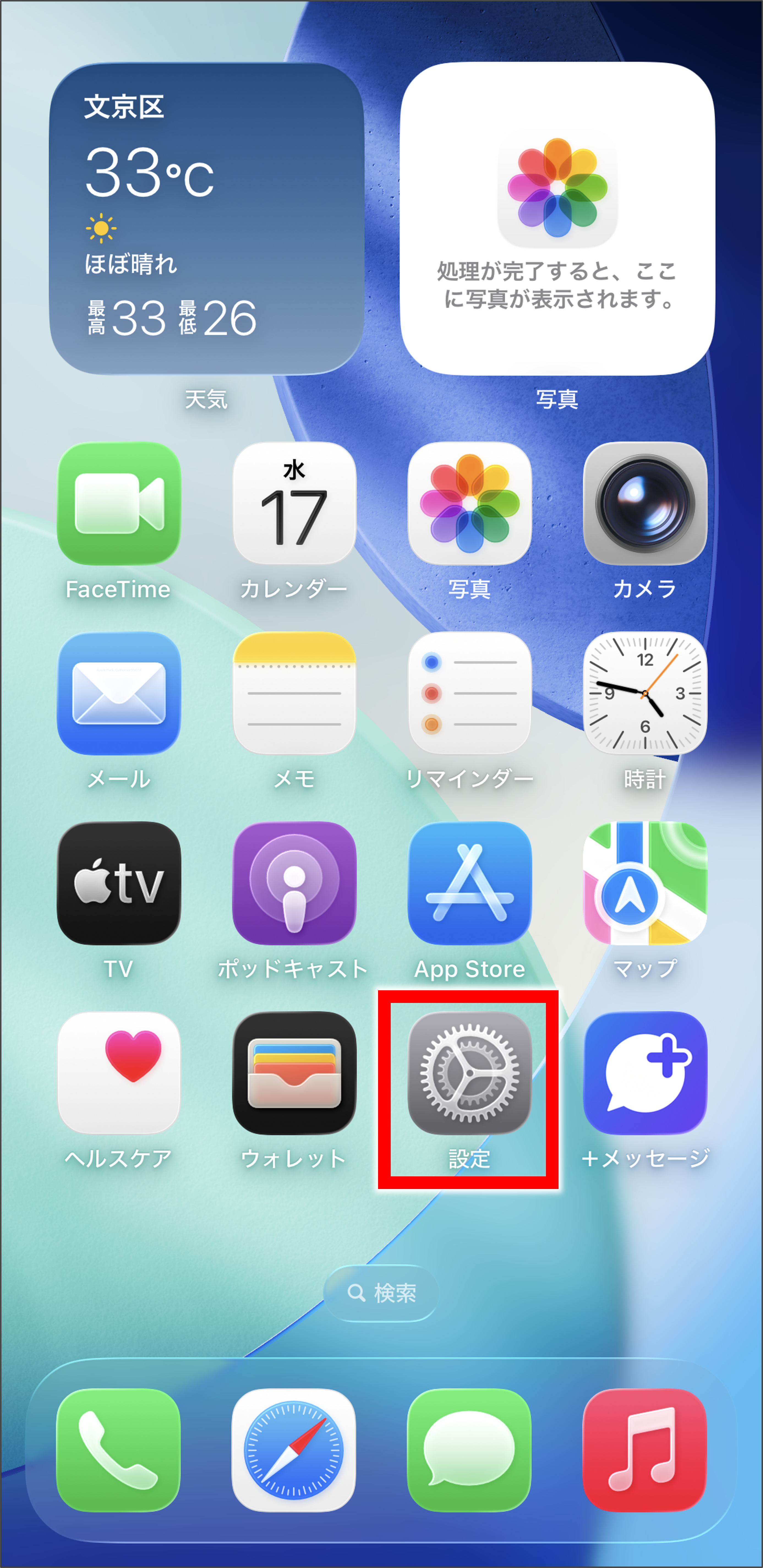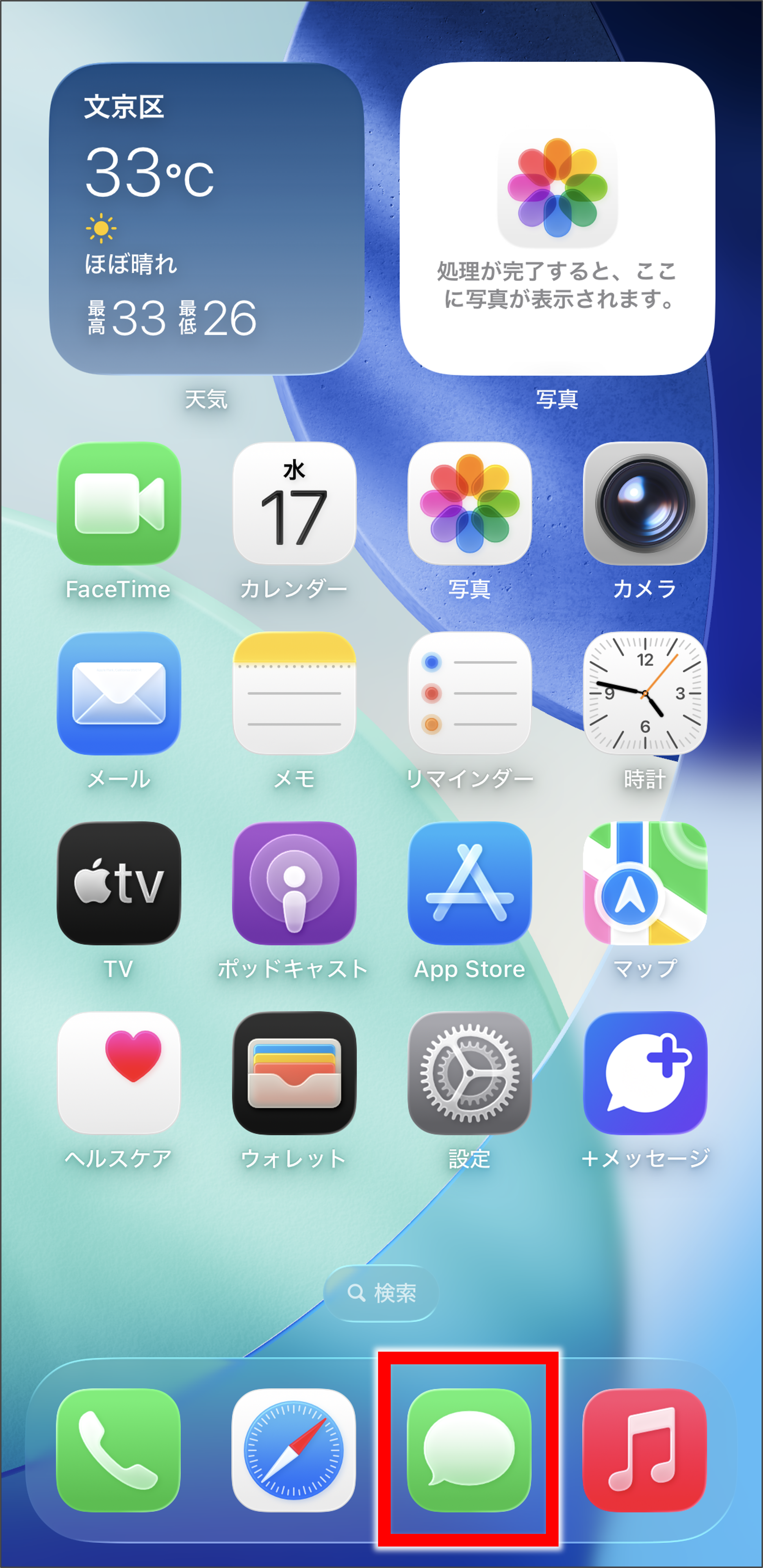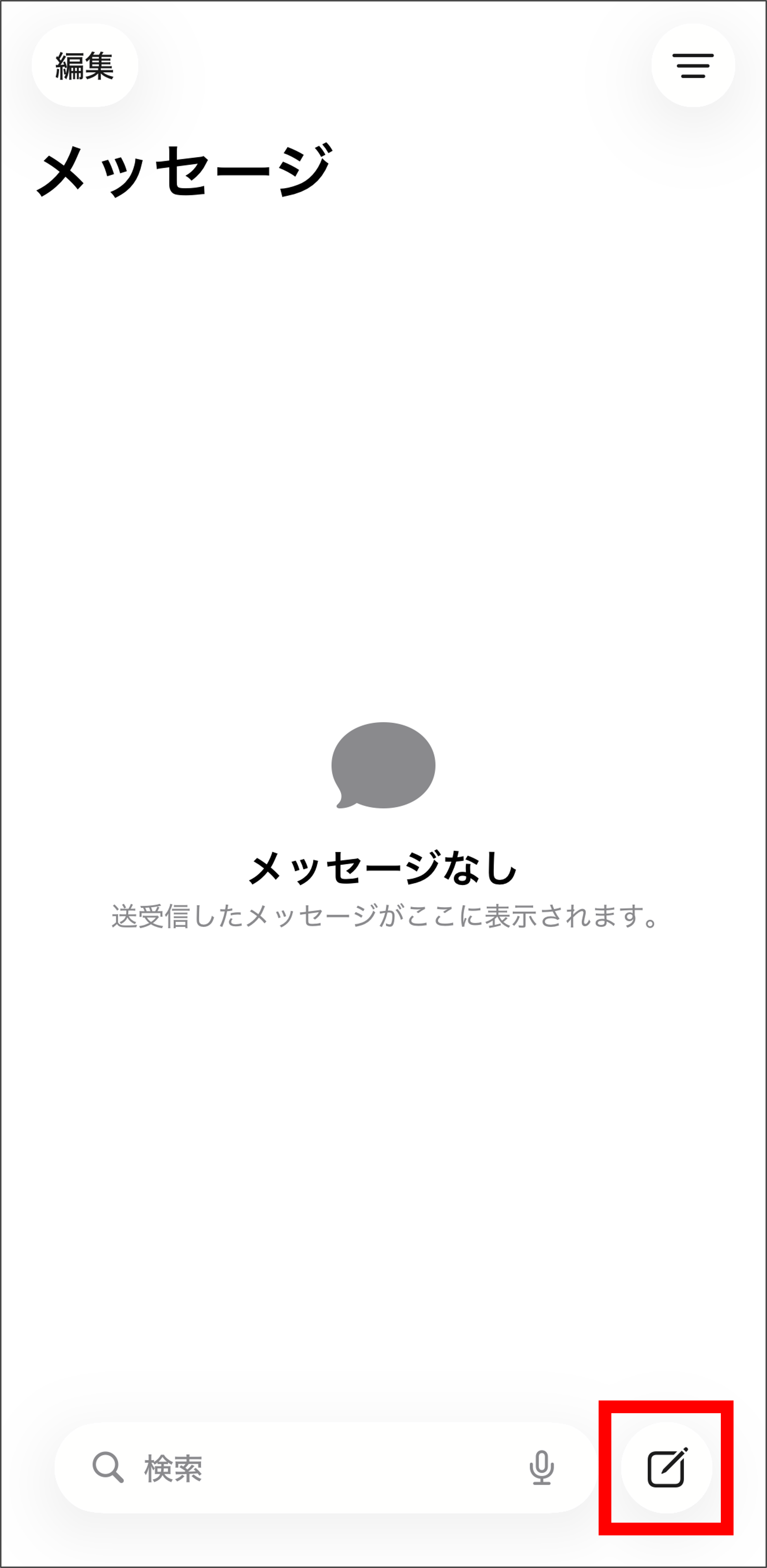 画面右下のアイコンをタップします。iOS26以外は画面右上にアイコンがあります。