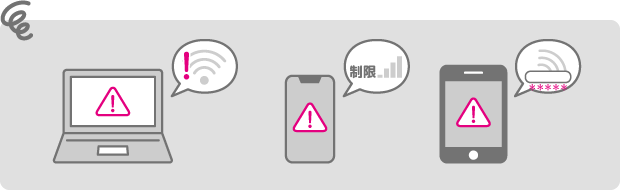 スマホやパソコンなどの端末をWiFiに接続する際に、「!」や「制限付きアクセス」、「制限」などと表示されることがあります。