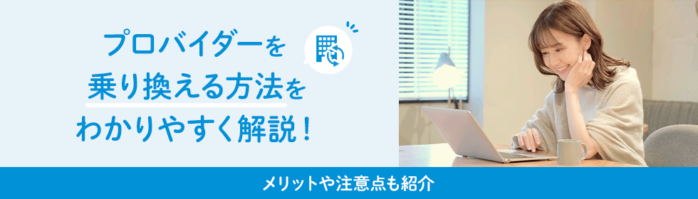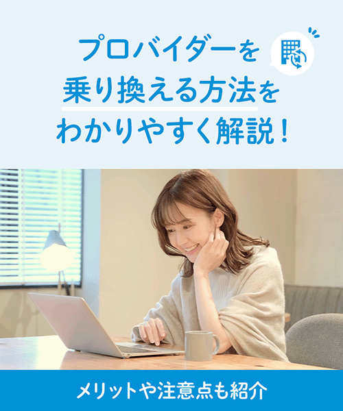プロバイダーを乗り換えることで、毎月の料金が安くなったり、通信が改善されたりする場合があります。プロバイダーを乗り換えて、通信費を節約したい、ネット環境を見直したいと考えている方もいるのではないでしょうか。