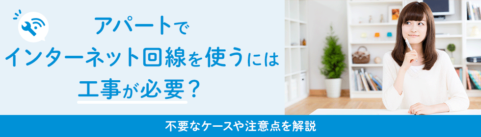 いずれの場合も、回線工事(屋外・宅内)が必要です。先述のケース2と同様、工事の際には、大家さんや管理会社の許可を事前に得なければなりません。ただし、回線工事が認められない可能性もあります。