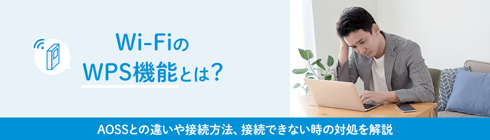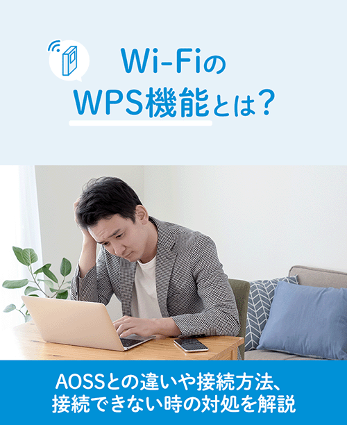 WPSは、ボタンを押すだけでWiFiの接続・セキュリティ設定ができる機能です。WiFiルーターによってはAOSSとなっている場合もありますが、名称が異なるだけで、機能自体はWPSと変わりません。