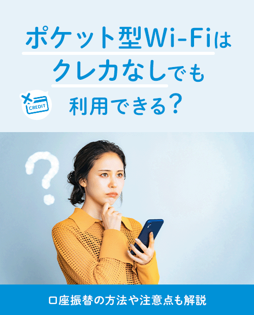 ポケット型WiFiは口座振替でお申し込みできる場合が多いため、クレジットカードがなくても利用できます。
