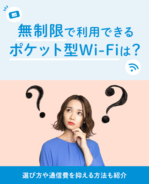 ポケット型WiFiは、月間のデータ通信量に上限が定められていることが多いですが、なかにはデータ通信量無制限で利用できる場合もあります。