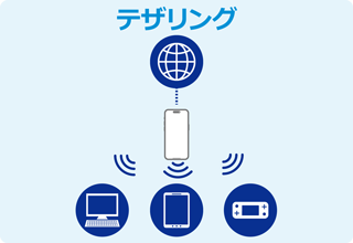テザリングを利用すれば、いつも持ち歩くスマホをモバイルルーター代わりにして、外出先でネットが使えます。カフェでパソコンをネットにつないで作業したり、外出先でゲーム機をオンラインで楽しんだりと、さまざまなシーンで活用できる機能です。