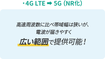 5Gでは、ミリ波・Sub6・NR化の3種類の周波数を活用してエリアをつくります。