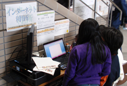 被災地の復旧支援活動として、避難所にパソコンおよびWiMAXの利用環境の無償提供を行いました。また、避難所ではスタッフによる利用方法の説明を行い、皆様にご利用いただきました。