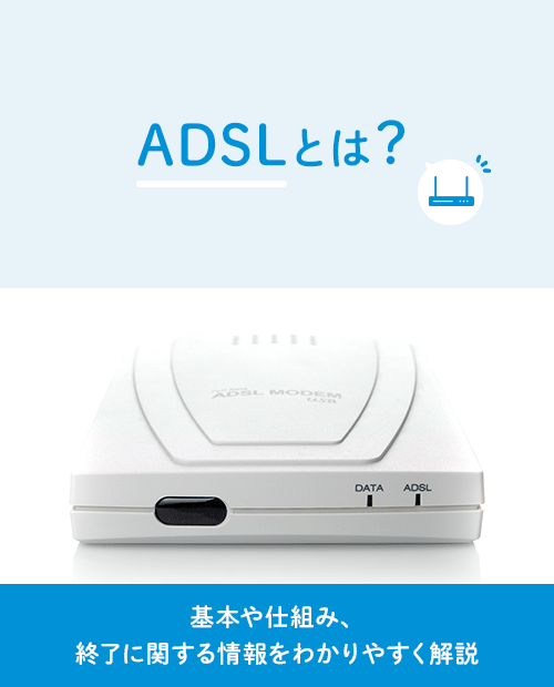 なお、ADSL回線は、2006年以降加入者数が減少に転じ年々縮小傾向にあったことや、通信に必要な設備の保守管理を維持していくことが難しい状況になったことから、ごく一部の地域を除き、サービス終了にいたりました。