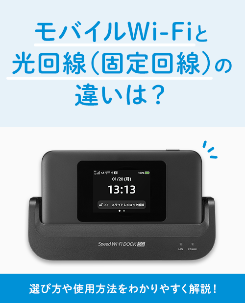まず、モバイルWiFiと光回線(固定回線)の概要を解説します。併せて、近年注目を集めるホームルーターも紹介します。
