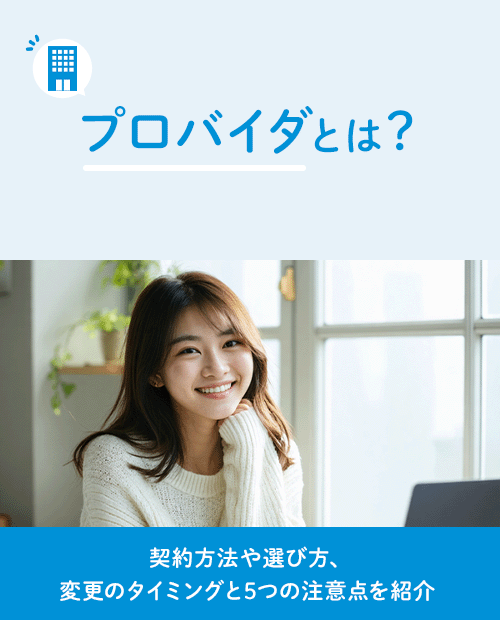 プロバイダの変更で、通信速度や安定性が改善することもあります。通信が遅い、安定しないと感じる時には、自宅の通信環境の見直しとあわせて、プロバイダの変更も検討してみると良いでしょう。