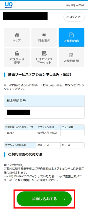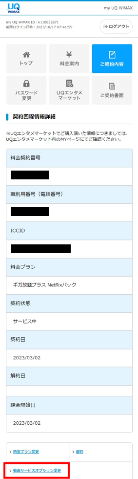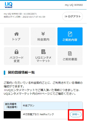 my UQ WiMAXにログインします。