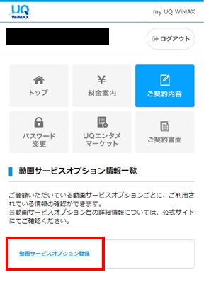 「動画サービスオプション登録」をタップします。