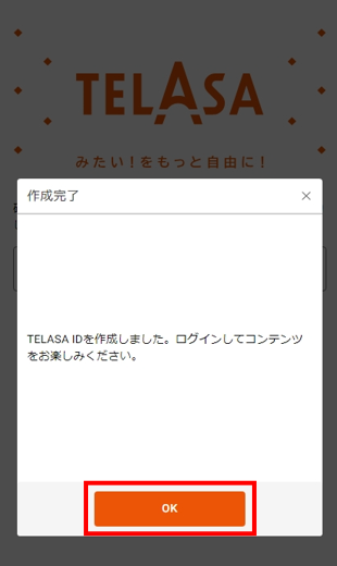 登録完了画面です。「OK」ボタンをタップします。コンテンツをお楽しみください。