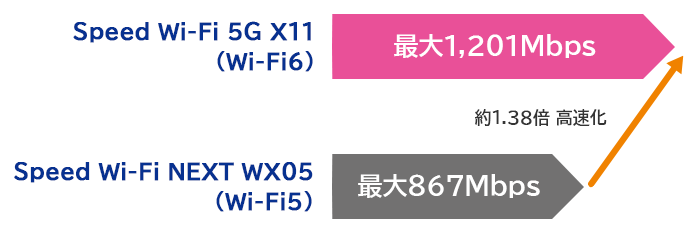 Wi-Fi 6*4対応で最大1.2Gbpsの高速通信*5とWi-Fi 5と比べ約1.38倍高速化。